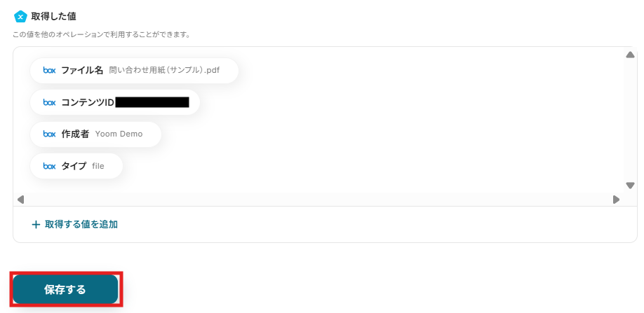 3)コンテンツIDはBoxのアウトプットから選択してください。