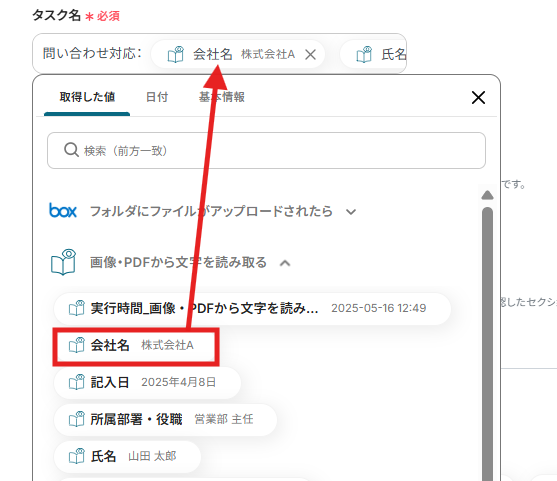 例えば、書類の内容をAIが読み取ってタスクを生成したり、フォームからの依頼を自動でタスク化したり、チャットでの指示を即座にタスクリストへ反映させたりすることができます。