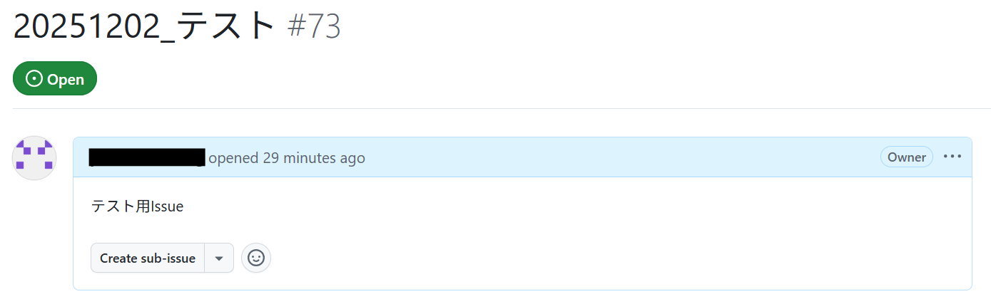 ここで以下のように、Githubにテスト用のIssueを作成しておきます。