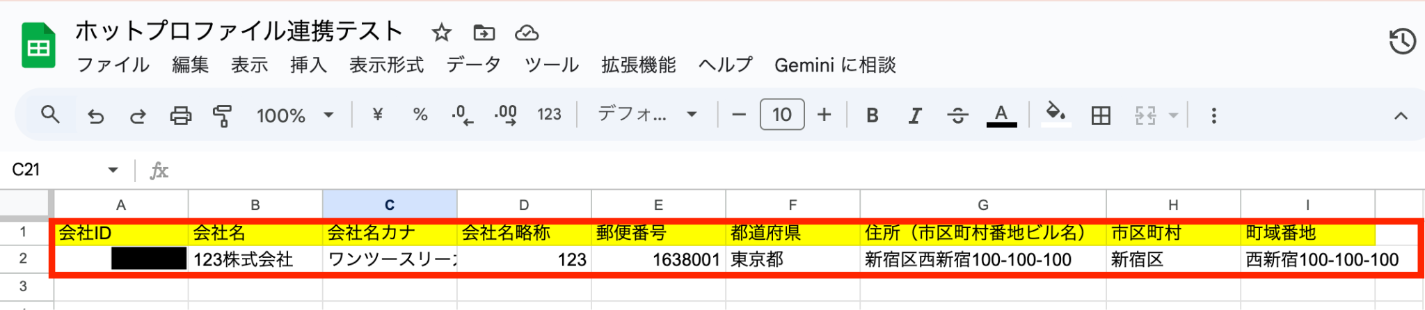 あとは、実際にホットプロファイルに会社情報を作成し、自動でGoogle スプレッドシートへの追記とメール送信がされるかを確認してみましょう!