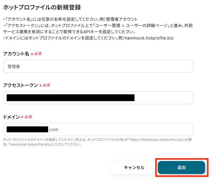 ・ホットプロファイル、Google スプレッドシートのそれぞれとYoomを連携してください。