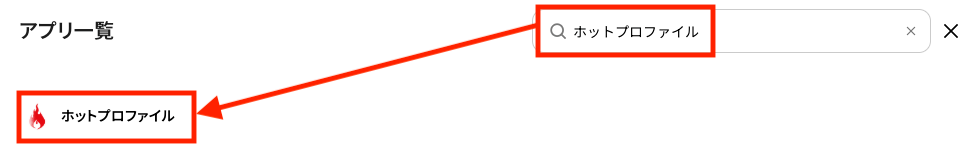 検索窓に「ホットプロファイル」と入力し、検索結果に表示されたアプリを選択します。