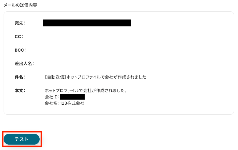 メールの件名や本文、宛先に間違いがないか確認したら、テストを実行しましょう。