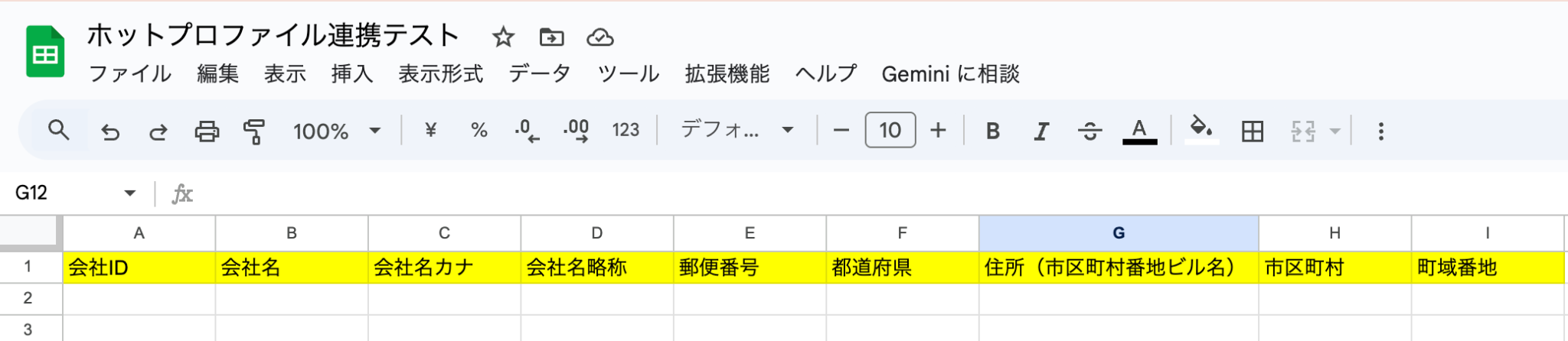 フローを作成する前に、ホットプロファイルの会社情報を自動で連携・転記するためのGoogle スプレッドシートを用意しましょう。