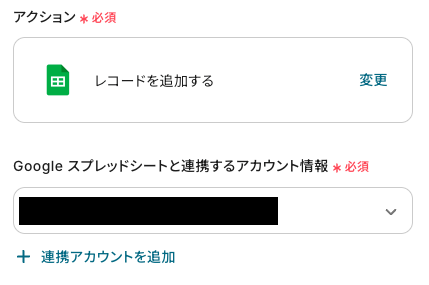 - アクション:テンプレート通りに「レコードを追加する」を選択します。