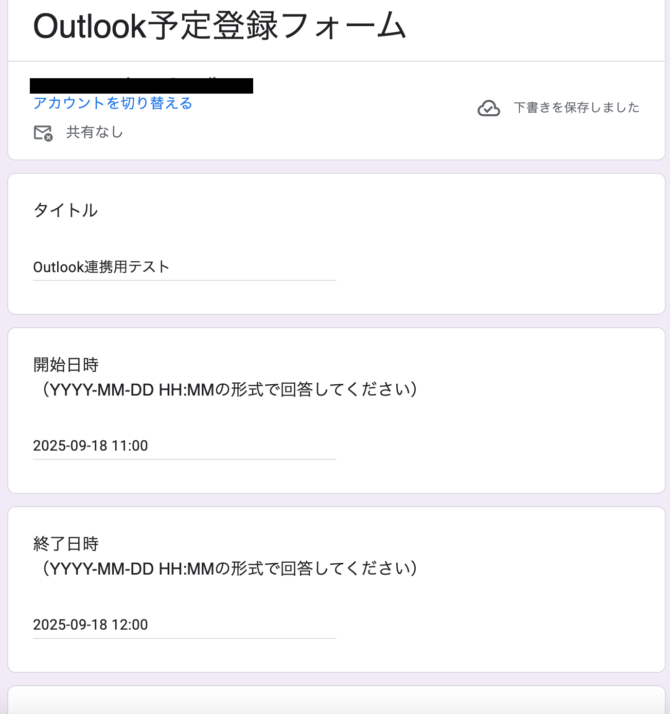 Googleフォームの回答内容をもとに、Outlookに予定を登録する