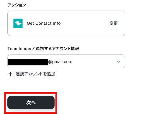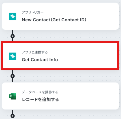 次に前ステップのTeamleaderのContact詳細を取得します。「Get Contact Info」をクリックしてください。