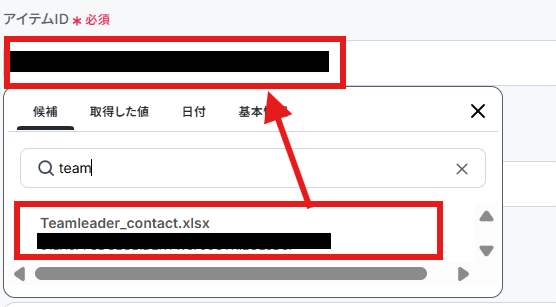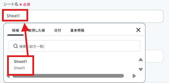 アイテムID・シートID・シート名も候補から選択して設定してください。