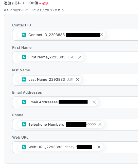 それぞれの値に対応するものを、前ステップの取得した値から入力していきましょう。