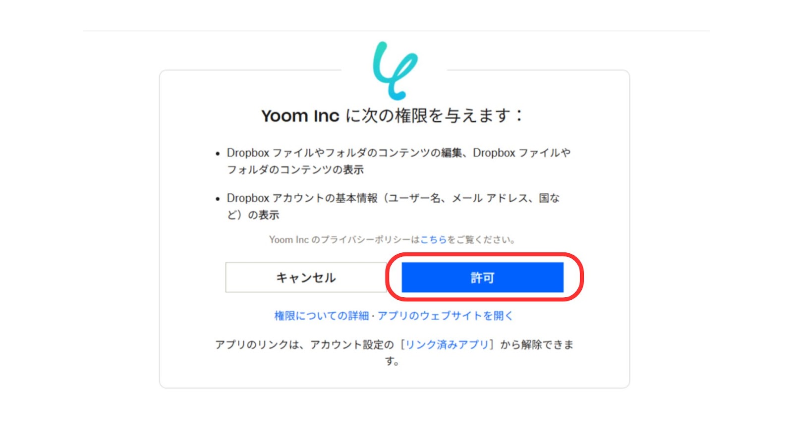 ・DropboxとYoomを連携してください。