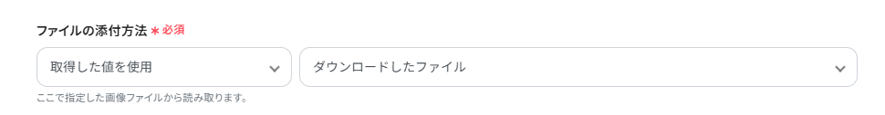 (3)ファイルの添付方法に「取得した値を使用」「ダウンロードしたファイル」を設定します。