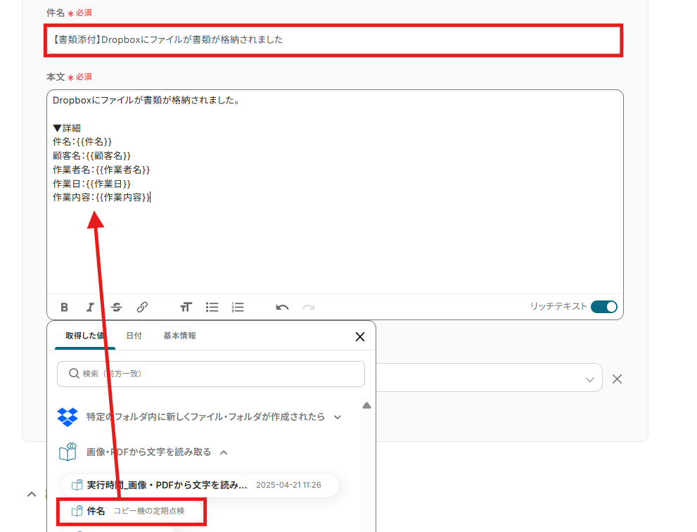 メールツールへOCR結果を自動送信する