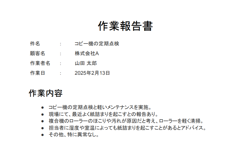 なお、今回は以下のような作業報告書をアップロードしました!