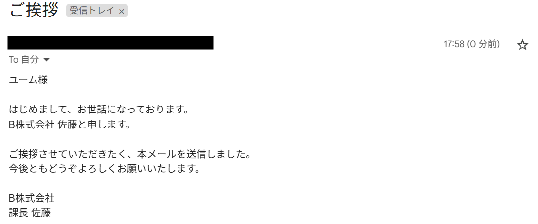 Gmailに進み、下記のようなテストメールを送信しました。