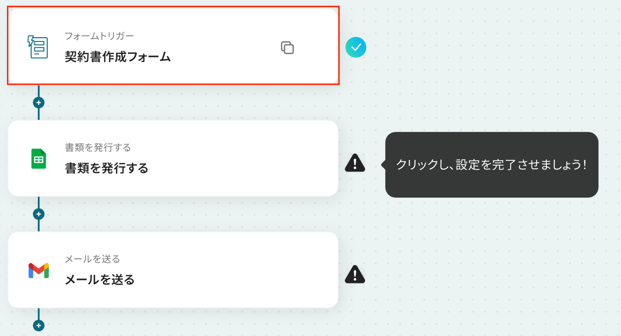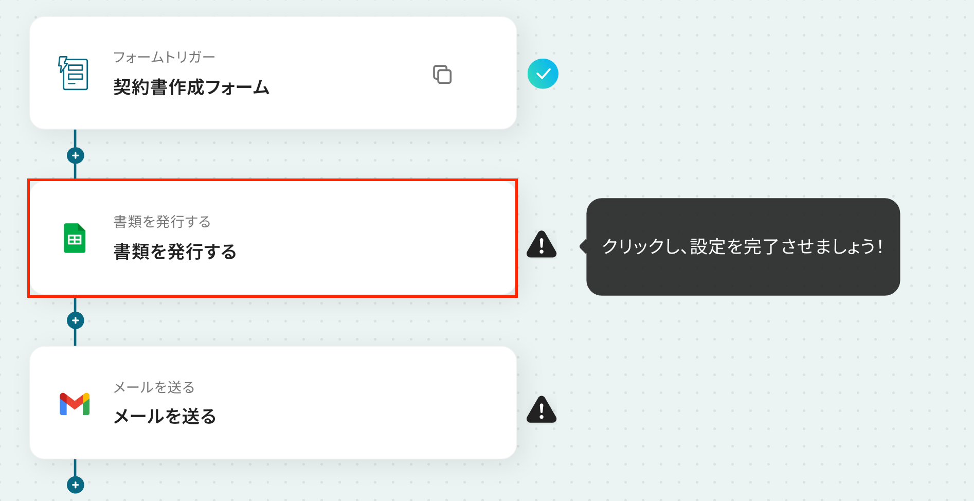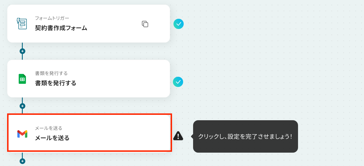 いよいよ最後の設定です!ここでは、先ほど作成した契約書ををGmailに通知する設定を行います。