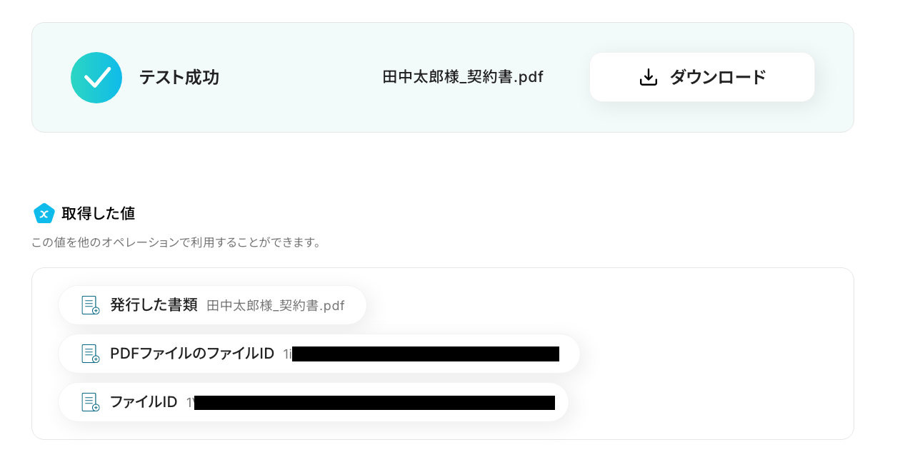「ダウンロードボタン」をクリックすると発行された書類を確認することができます。