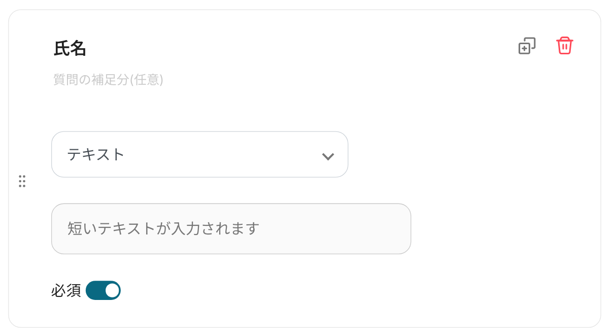 質問形式は、上記の画面では「テキスト」と設定されていますが、プルダウンを開いて表示される項目の中から選ぶことができます。
