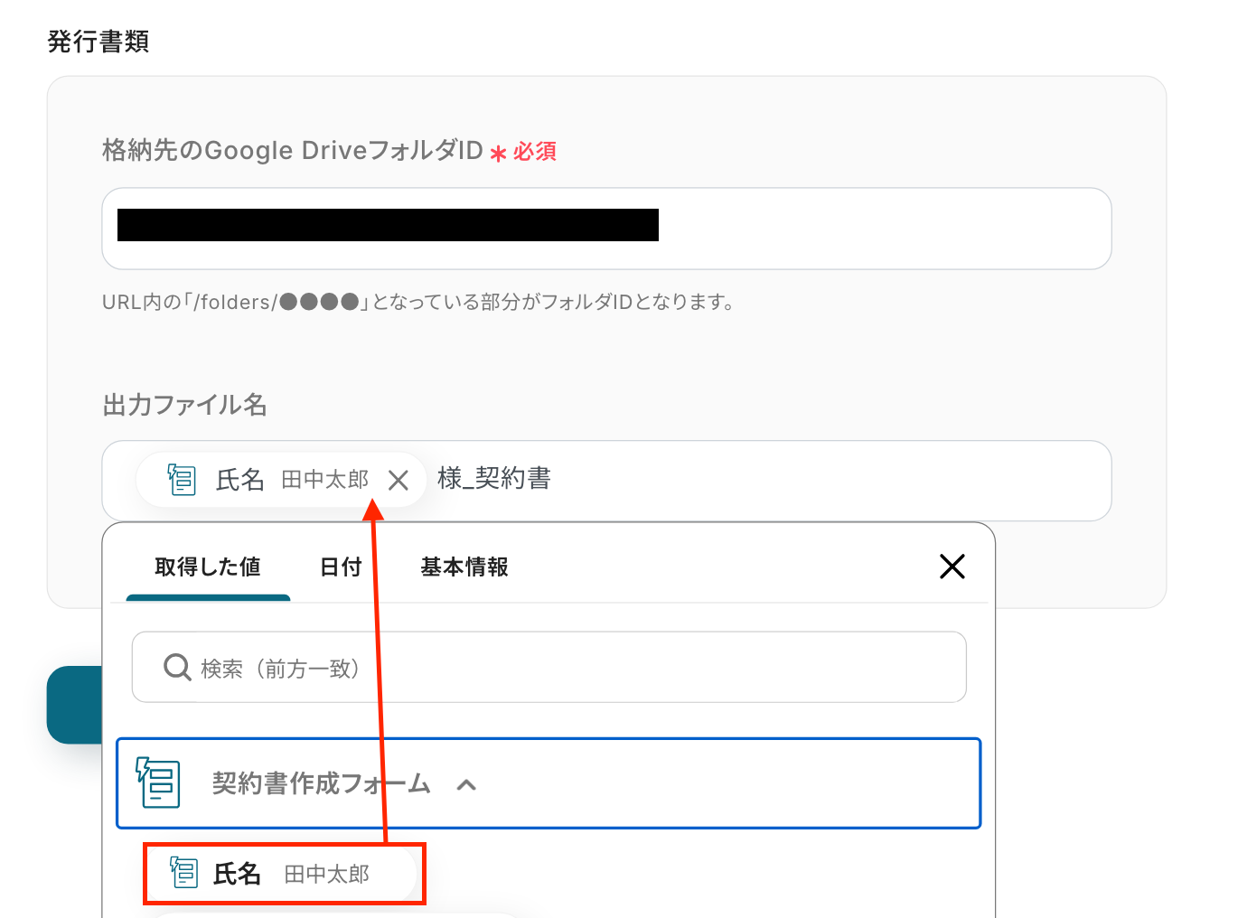 ・「書類を発行する」アクションでは、任意のGoogle Driveの格納先を設定可能です。