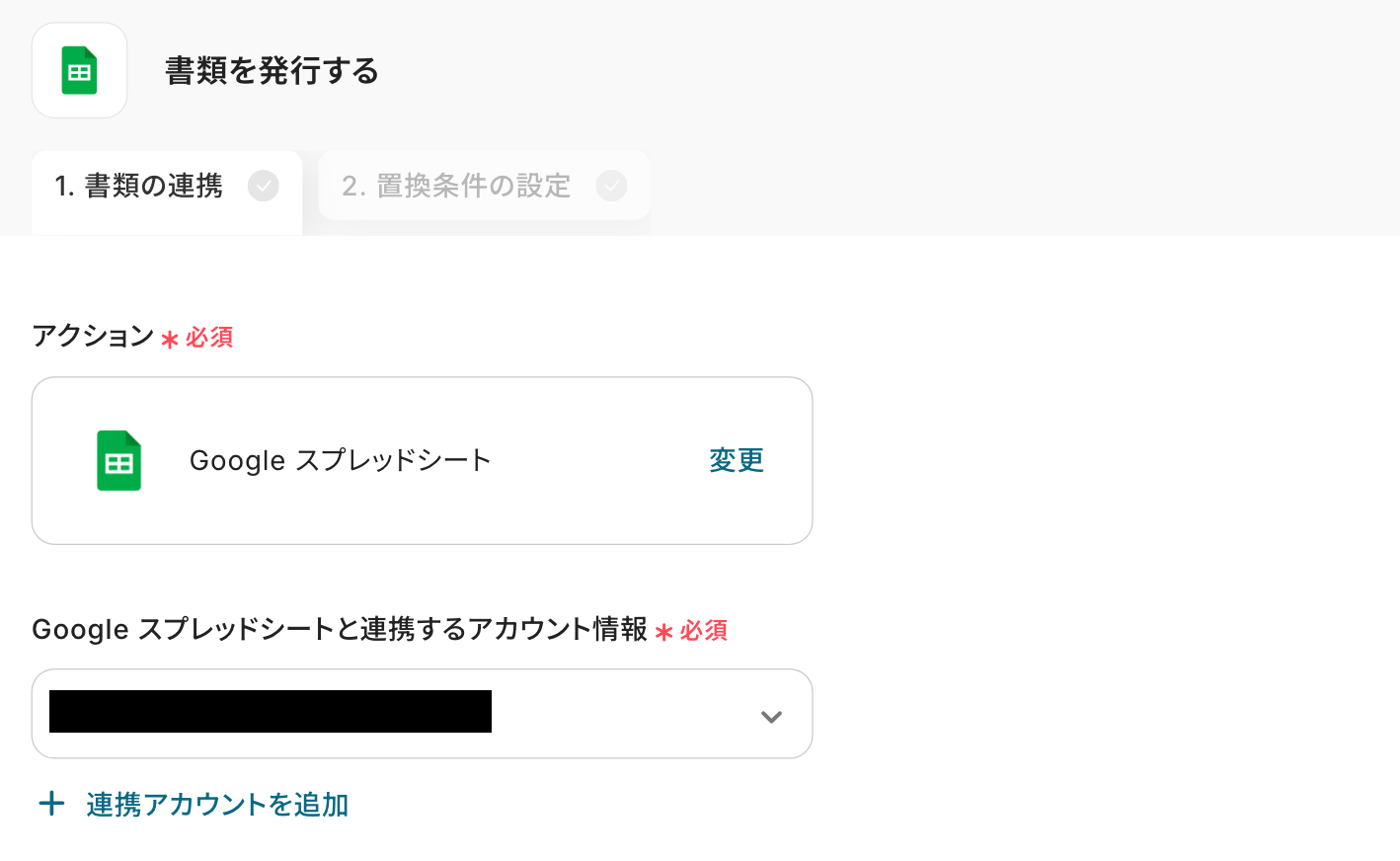 続いて、Google スプレッドシートで書類を発行する設定です。