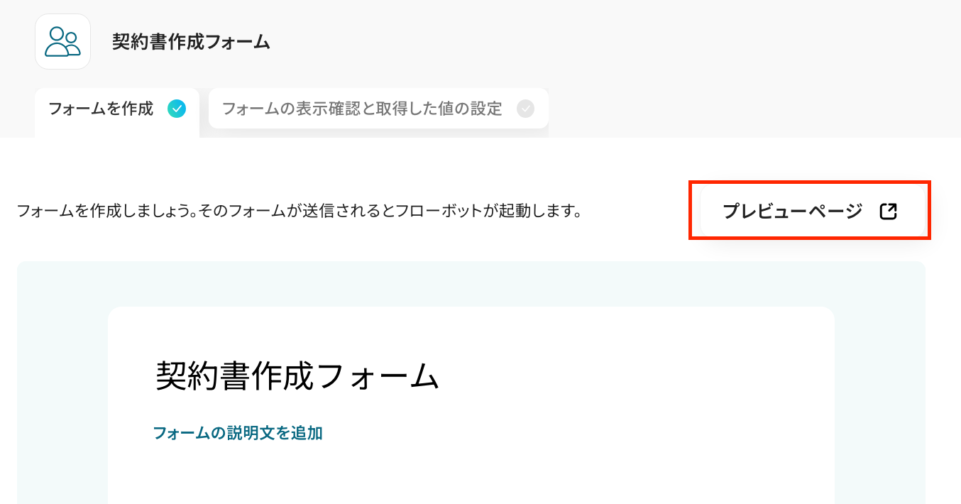 「プレビューページ」や「完了ページ」をクリックすると、作成したフォームや完了ページのプレビューを確認できます。