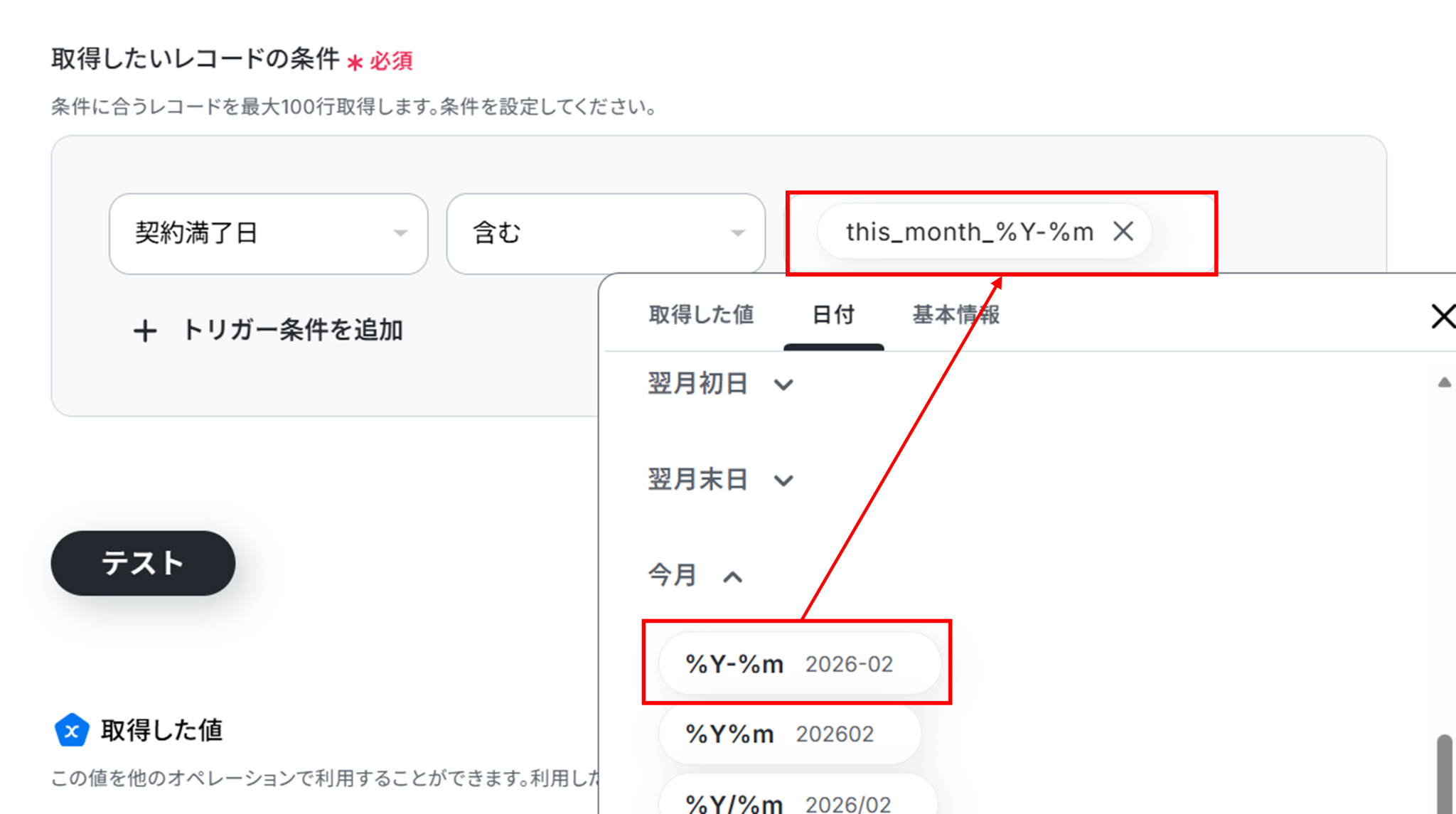 (3)「取得したいレコードの条件」を設定します。