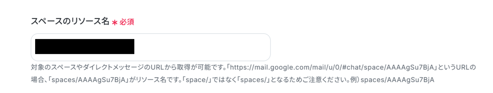 (3)「スペースのリソース名」を候補から選択します。