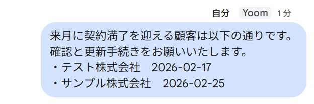 - 指定した日時に契約情報を自動で取得し通知するため、これまで手作業での確認やリマインドに費やしていた時間を短縮できます。