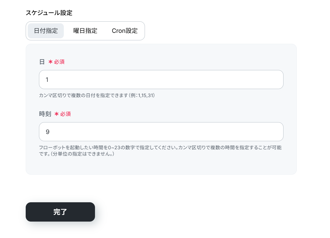 「毎週月曜日の9時」「毎月1日の9時」など細かく設定することができます。