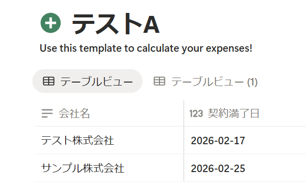 Yoomで設定する前に、Notionにテスト用のレコードを作成しましょう。