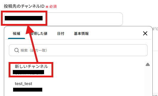 設定画面上の注釈を確認したのち、投稿先のチャンネルIDを候補から選択します。