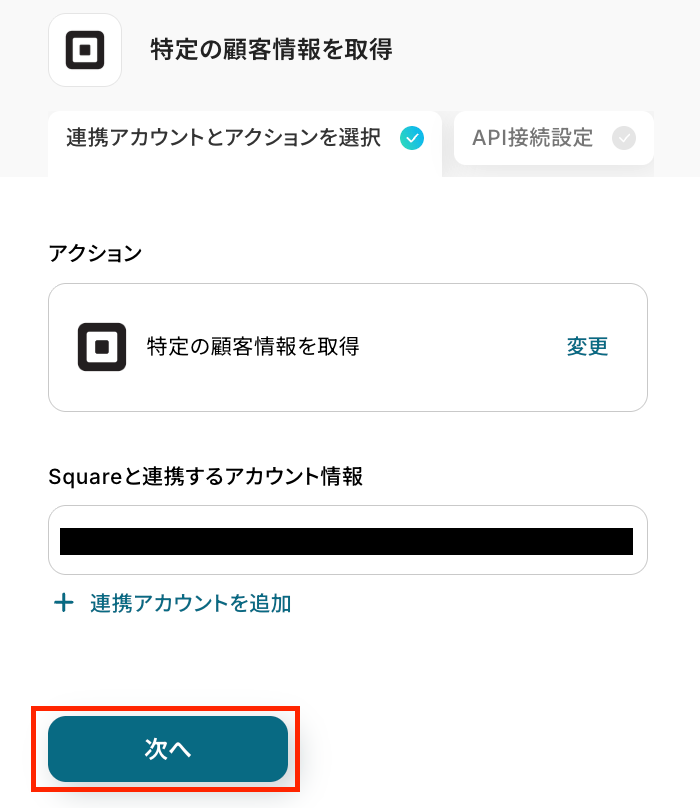 ステップ4:Squareの特定の顧客情報を取得する設定