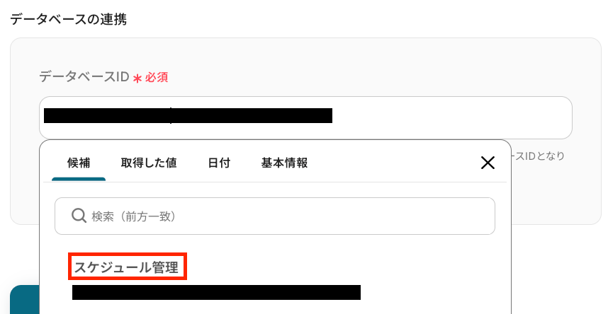 - Notionでレコードを追加するアクションを設定する際に、対象とするデータベースを任意で設定してください。
