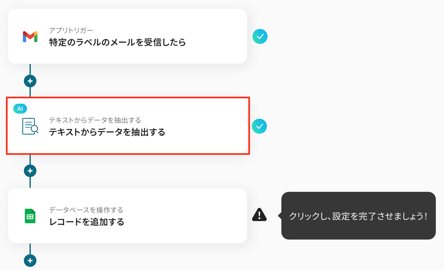 これで、テキストからデータを抽出する設定は完了です!