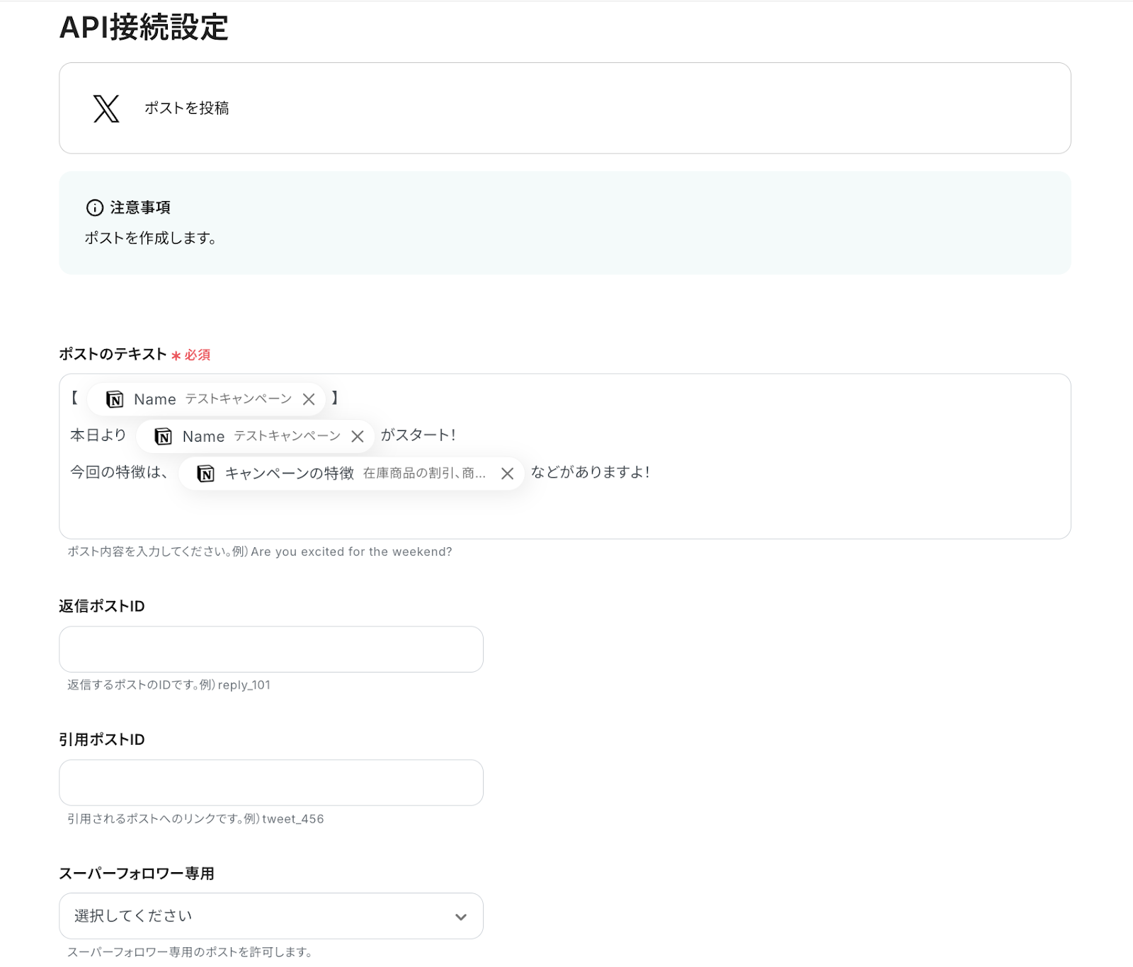 設定後はテストを実行し、Xに問題なく投稿されるか確認してみましょう。