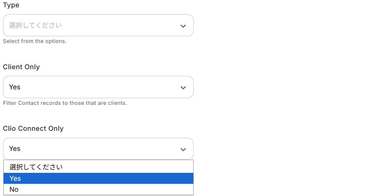 Clio Connect Only…Clio Connectユーザーである連絡先レコードのみに絞り込むか