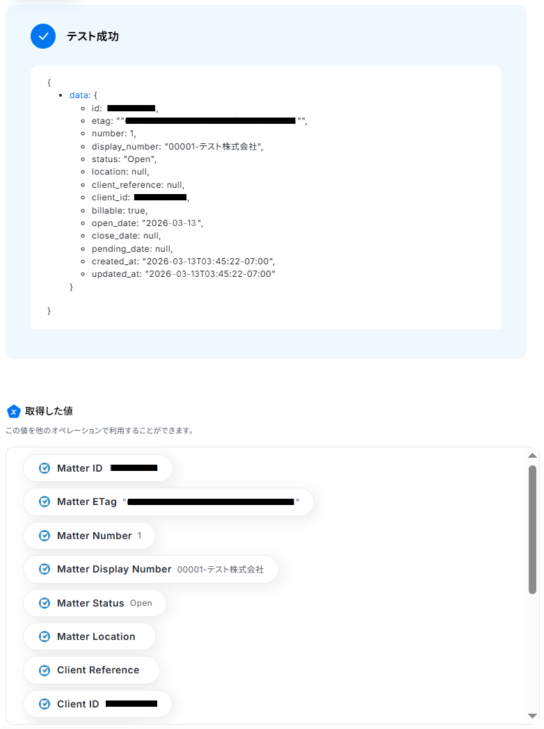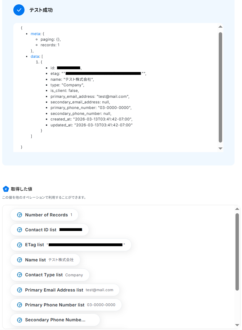 成功したら保存しましょう。Matter作成に必要なContact IDを取得できました!