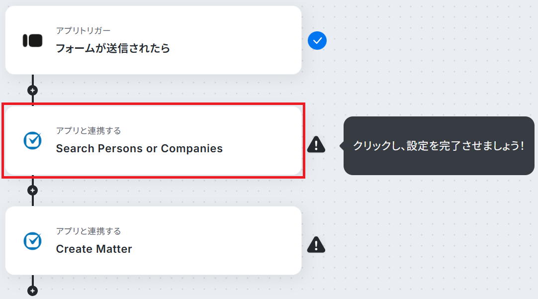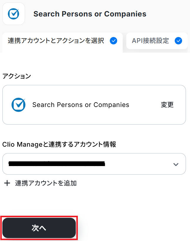 ステップ3と同様、アクションは「Search Persons or Companies」のまま「次へ」をクリックしてください。