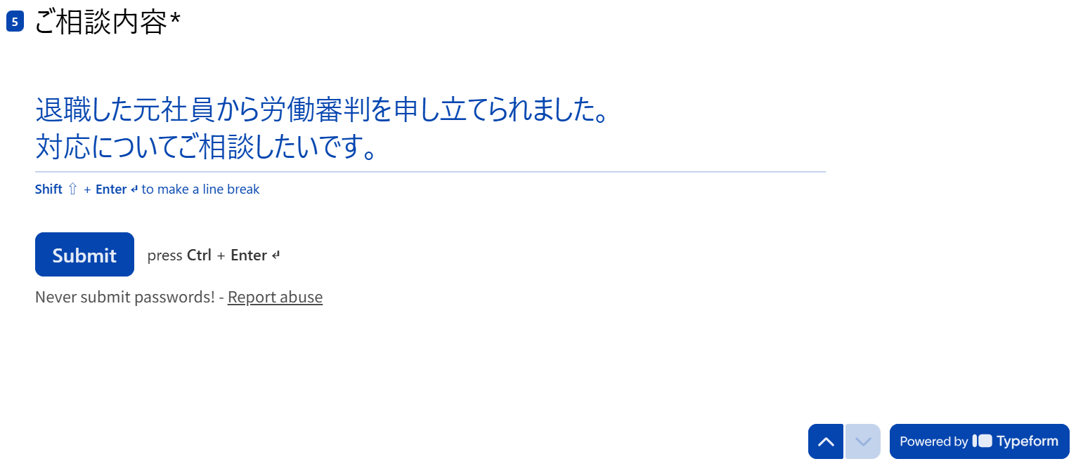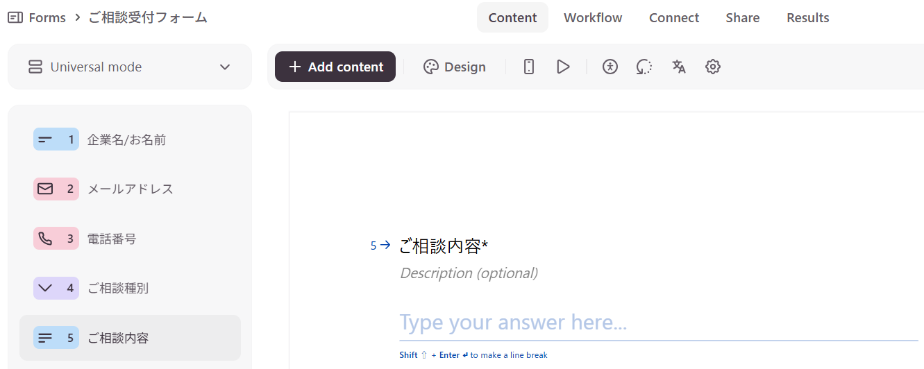 今回はClio Manageと連携するため、例として法律事務所の相談受付フォームを作成しました。
