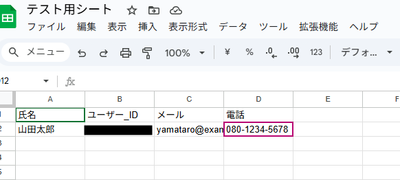 なお、今回は以下のようなGoogle スプレッドシートを使用します。
