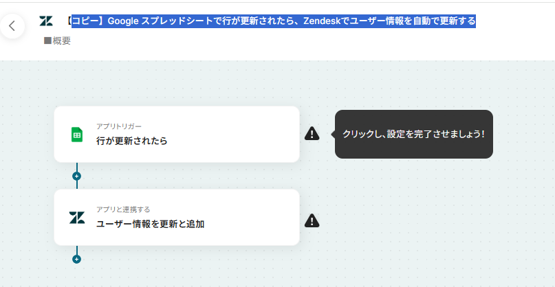 Google スプレッドシートからZendeskのユーザー情報を更新するフローを作ってみよう それではここから代表的な例として、Google スプレッドシートで行が更新された際に、Zendeskのユーザー情報を自動で更新するフローを解説していきます!