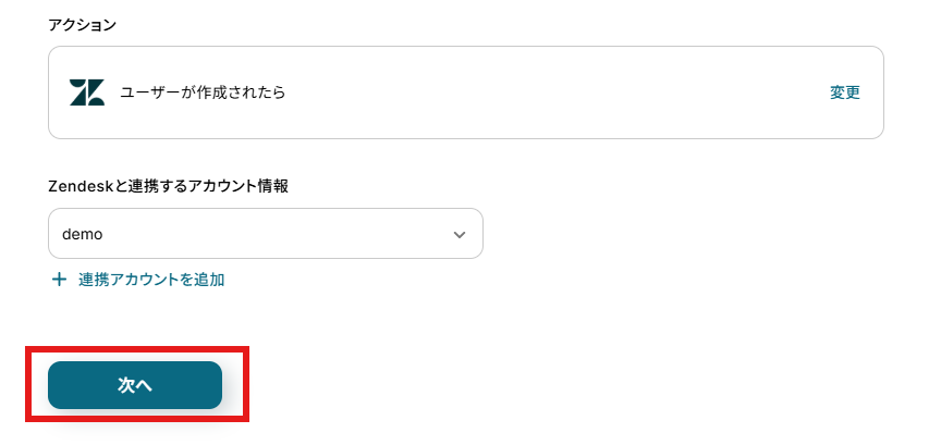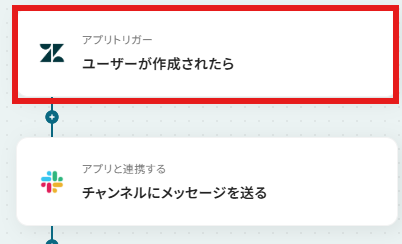 - 次に、トリガーでZendeskを選択し、「ユーザーが作成されたら」というアクションを設定します。