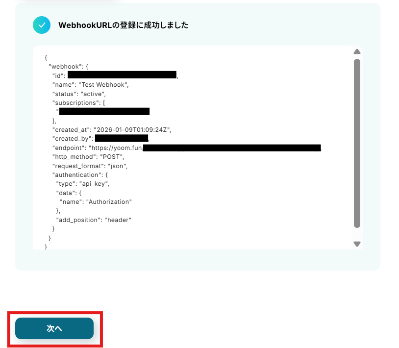 入力が終わったら「WebhookURLを登録」ボタンをクリックしてください。