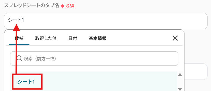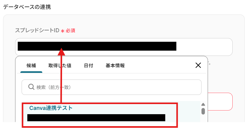 編集欄をクリックすると、Google スプレッドシートの候補が表示されるので、連携したいGoogle スプレッドシートを選んでください。 選択するとIDが自動で入力されます。