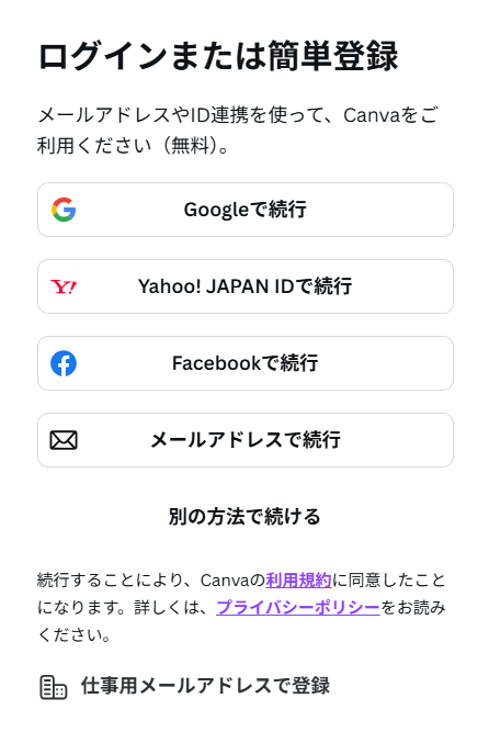 1.Canvaのマイアプリ連携 アプリ一覧で、Canvaを検索し選択すると、下記の画面が表示されます。 連携したいアカウントでログインしてください。