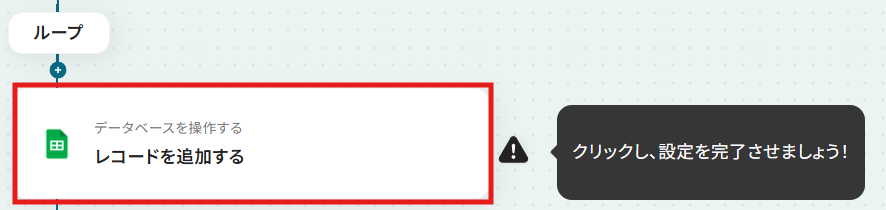 ステップ6:Google スプレッドシートのアクション設定 最後に、Canvaから取得したアイテム情報をGoogle スプレッドシートに自動で追加する設定を行います。 「レコードを追加」をクリックしてください。