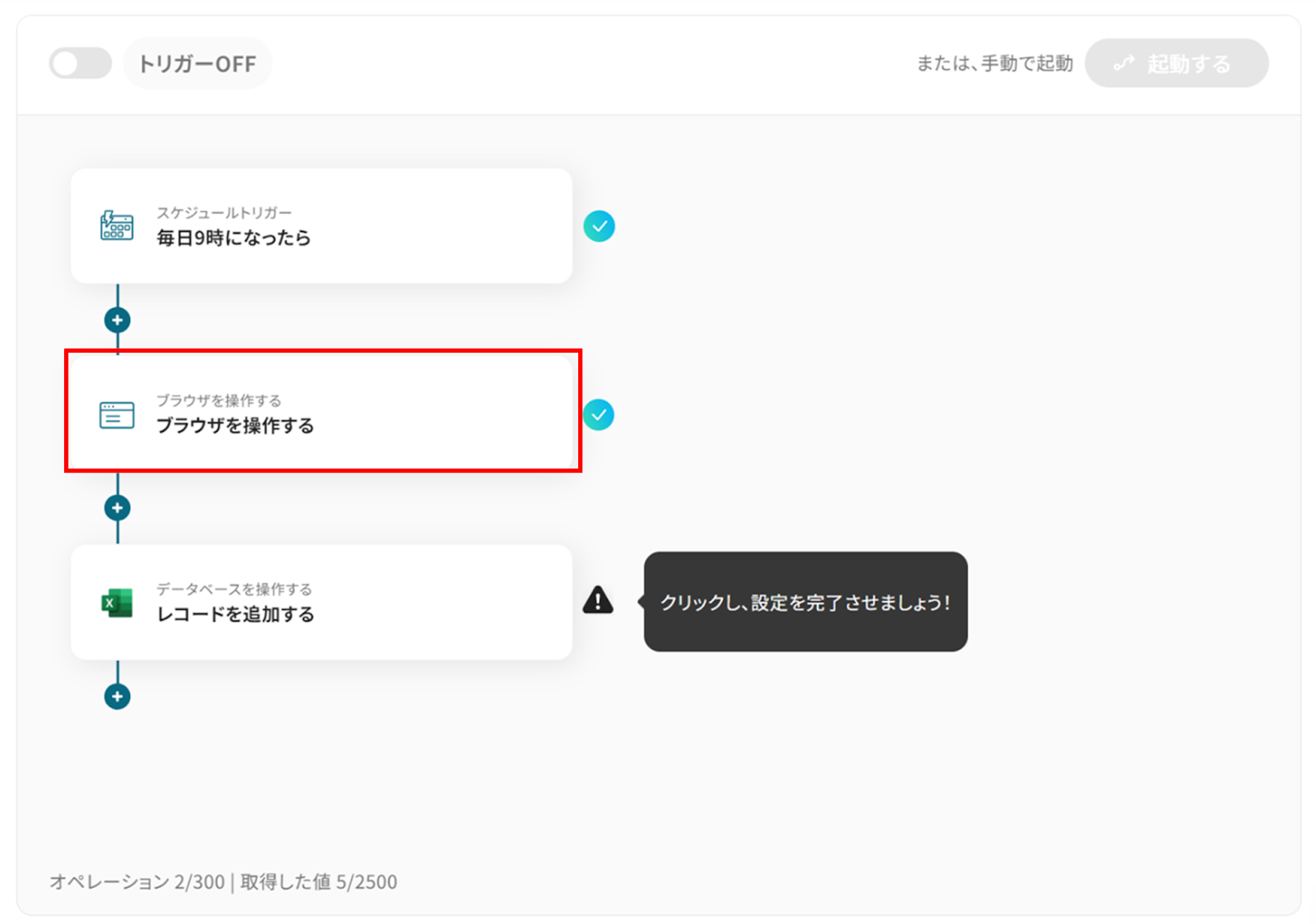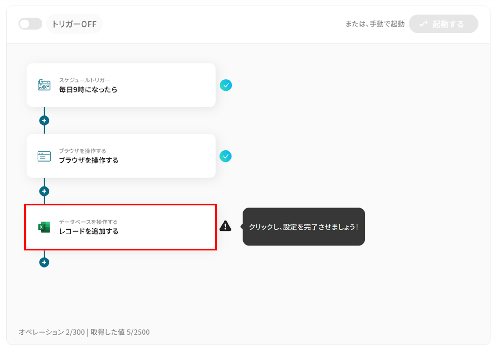 ステップ6:トリガーをONに設定しフロー稼働の準備完了