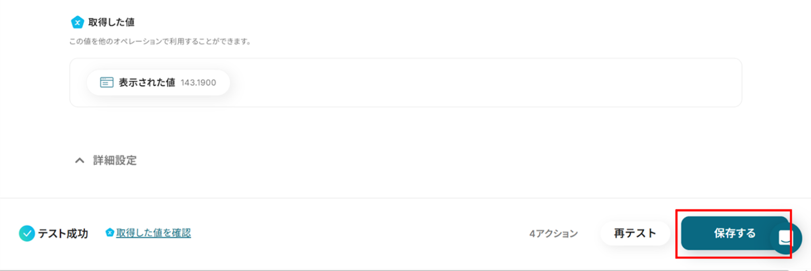 「取得した値」にサイトの情報が反映されればテスト成功です。