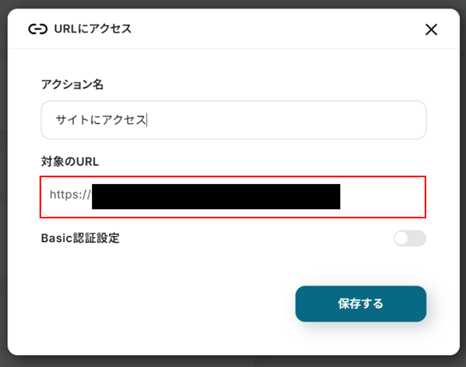 「1.URLにアクセス」では対象のURLを入力して「保存する」をクリックします。