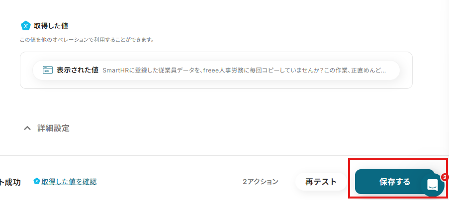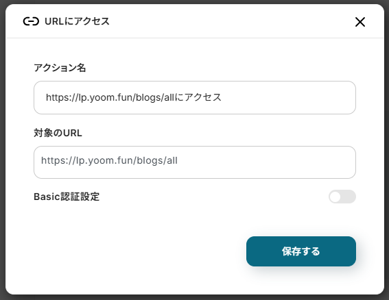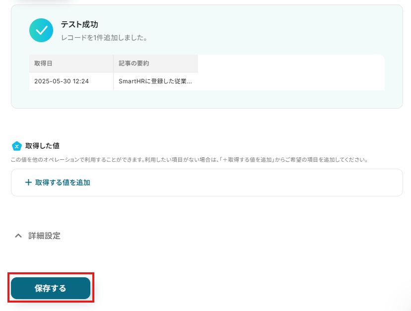 確認したらYoomに戻り、「保存する」をクリックしてください。