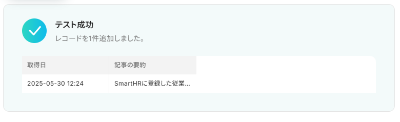 「取得した値」に先ほど「表示されている値を取得」の操作で取得した、記事の要約文が得られます。